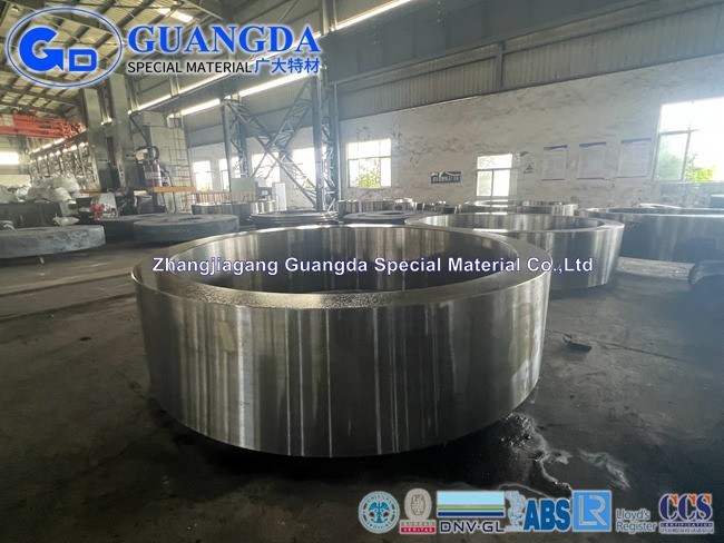 Blanc forgé de haute qualité d'anneau d'approvisionnement de Guangda grand ou pièces demi-complètes ou de finition pour la fabrication d'axe. Le traitement thermique et l'usinage approximatif sont fournis par notre société. Nous pouvons offrir les anneaux forgés qui peuvent être adaptés aux besoins du client selon votre forme, taille, et matériel.
